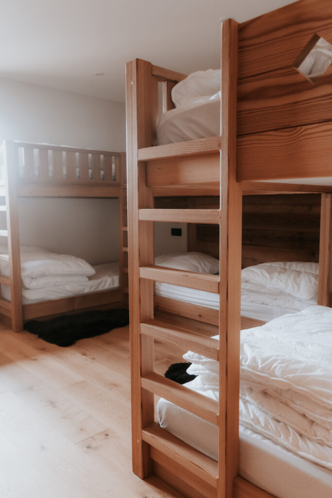 - chambre « dortoir » avec 6 lits superposés en 80×190 et sa salle de douche